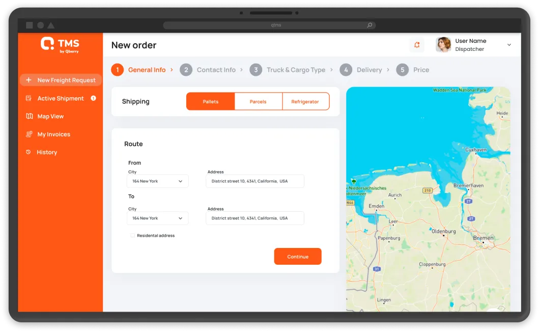 TMS for the logistics company with automated route planning and delivery points management modules. The solution's integration with the existing LMS